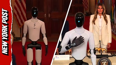 First Lady Melania Trump hosted a “Fostering the Future Together” high-tech meeting and was escorted by a robot, handsome android known as Figure 3.